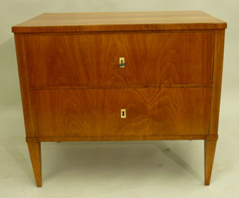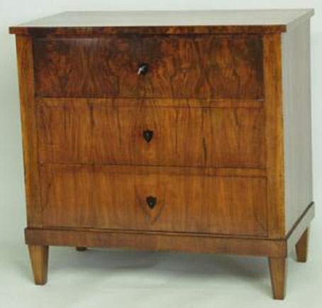 Nussbaum furniert, um 1820, süddeutsch Maße: Höhe 84 cm, Breite 86 cm, Tiefe 47 cm kleines dreischübiges, schlichtes, sehr gut erhaltenes Möbel Preis: € 2.200.-