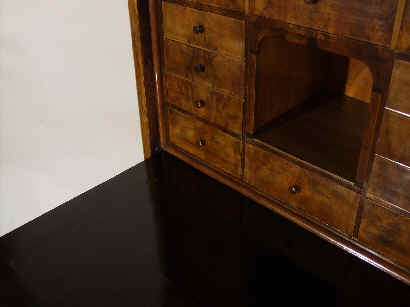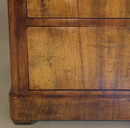 Trotz der mannigfaltigen, notwendigen Maßnahmen zur Wiederherstellung eines harmonisch ästhetischen Gesamteindruckes und der Wiederherstellung funktionaler Gebrauchsfähigkeit zeigt das Ergebnis der Restaurierung ein Möbel mit der natürlichen Ausstrahlung des gealterten Holzfarbtons. Die plastische Patina, das heißt die Unregelmäßigkeit der Holzoberfläche ist nicht beeinträchtigt. Sie wird vielmehr betont durch den dezent matten Glanz der nur aufgefrischten Originalpolitur. Diesen Zustand zu erreichen, ist das Ziel verantwortungsbewusster Möbelrestaurierung.