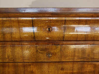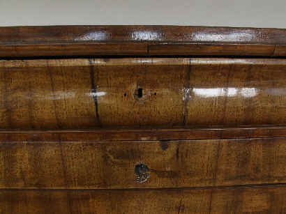 Ein Möbel , wie es scheint, in recht ordentlichem Zustand, aber durch vielerlei Schäden ist es unansehnlich geworden und in seinem Gebrauchsnutzen erheblich beeinträchtigt. Mit den folgenden Bildern möchte ich Ihnen veranschaulichen, welch umfangreiche Arbeitsschritte notwendig sind, ein Möbel so zu restaurieren, dass es wieder ästhetischen und funktionellen Erfordernissen gerecht wird, und trotzdem sein ideeller und materiellen Wert nicht beeinträchtigt oder gar zerstört wird.
